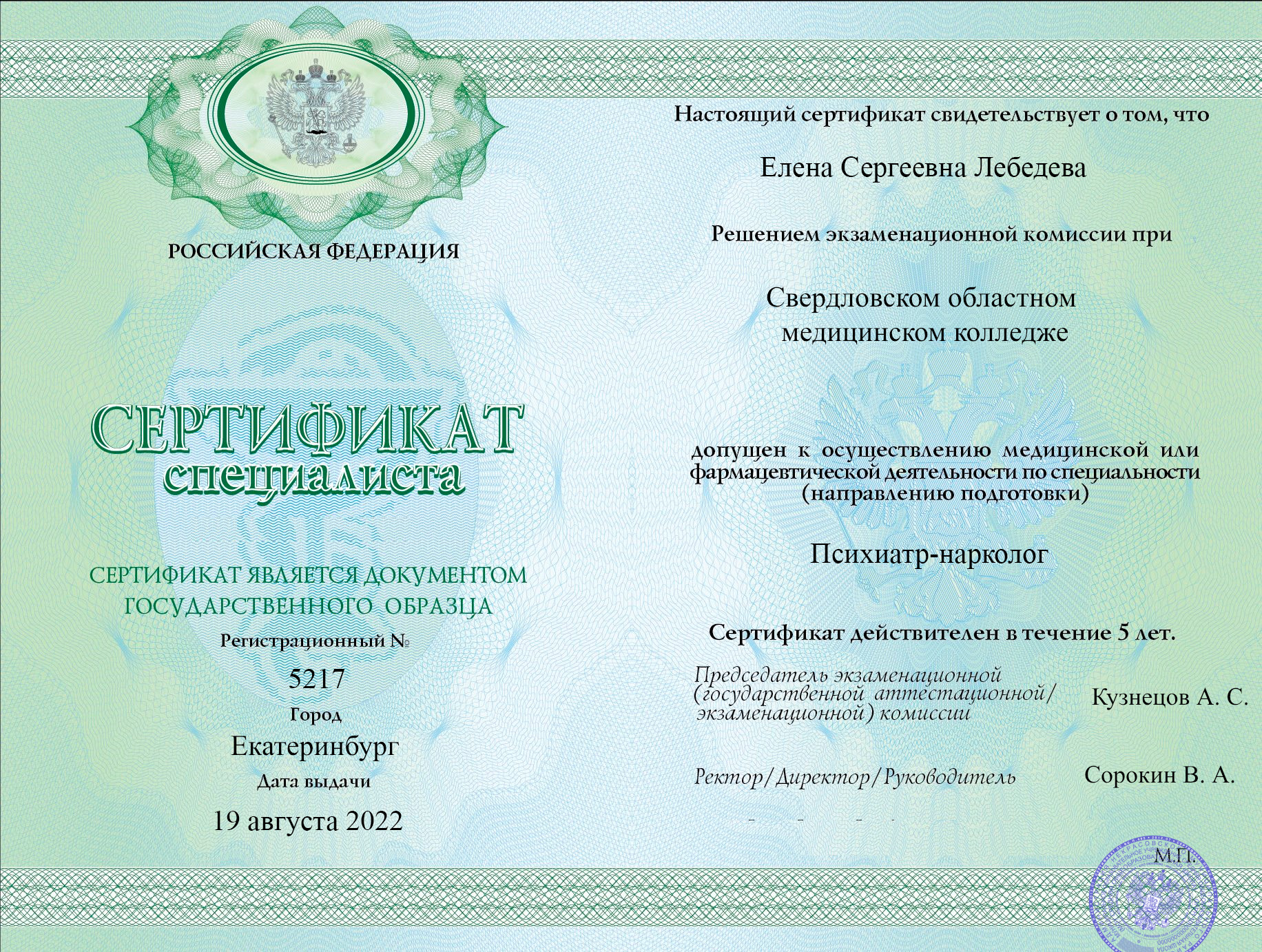 Елена Сергеевна Лебедева врач нарколог клиники доктора Стукаловой во Фролово